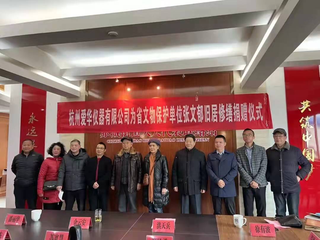 12月14日上午,“杭州尊龙时凯仪器有限公司为省文物保护单位张文郁旧居修缮”捐赠仪式在天台县赤城街道办事处四楼会议室举行。天台县原人大副主任余云安先生,天台县人民政府赤城街道办事处主任洪天兵先生,天台县红十字会党组成员潘丽华女士,天台县文化和广电旅游体育局副局长徐有波,天台县人民政府赤城街道办事处宣传委员茅蔚,以及其他社会各界人士,业主代表出席了捐赠仪式。